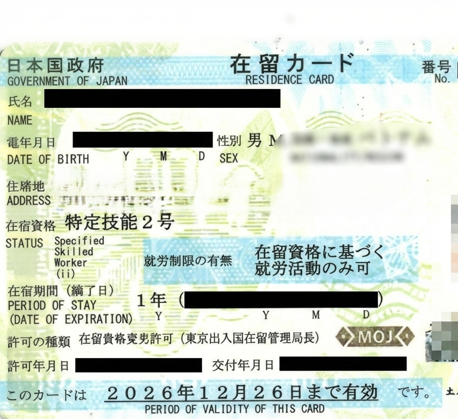 新たなステージへ。「特定技能2号」の在留カードが届きました。